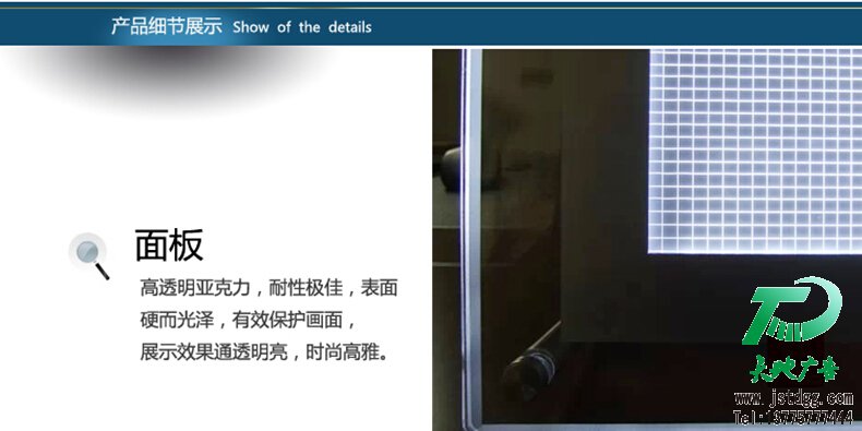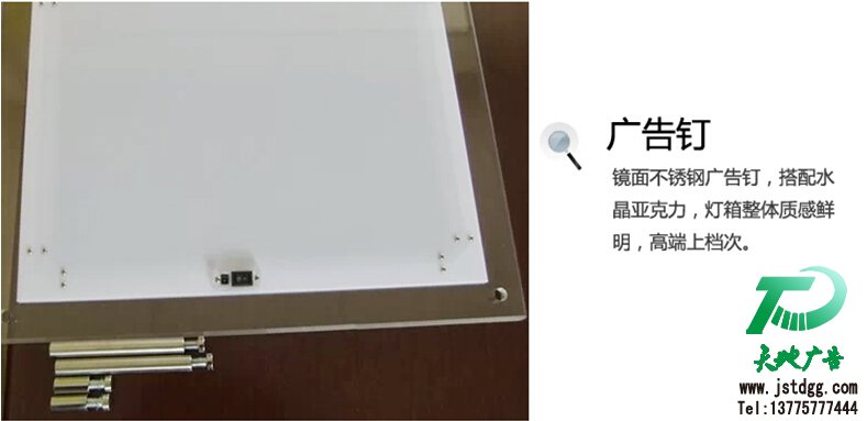LED水晶燈箱有擺桌式、懸掛式、壁掛式,適用于各類高檔場所。LED水晶燈箱透明水晶框,光線均勻,明亮的光線完全平面輸出,且近乎完美的均勻。外形優美,超薄,水晶燈超薄超輕的外型,美觀、最大限度地提高了空間利用率,美化了環境,拓寬了應用范圍。側面導光設計,燈箱點亮時四周光彩絢麗。水晶燈箱值得稱道的優勢就是節能。LED水晶燈箱是由:導光板、高品質LED光源、反光紙、安裝配件組成。專用的LED光源平均使用壽命5年以上。使用壽命的延長大大節省了維護費用。水晶燈箱的主要材料結構即為導光板,導光板主要分三種:絲印導光板、激光打點導光板、線刻導光板。水晶燈箱的配備懸掛式或墻面固定式配件,使畫面更換簡單、快捷,省時、省錢。水晶燈箱適用于:婚沙攝影、家庭裝飾畫;室內外指示牌、大型展覽工程或活動展覽展示、商場、銀行、賓館、酒店、等墻面裝飾宣傳、機場、地鐵、車站、公交站臺等廣告媒體、工藝禮品、流動廣告牌等。