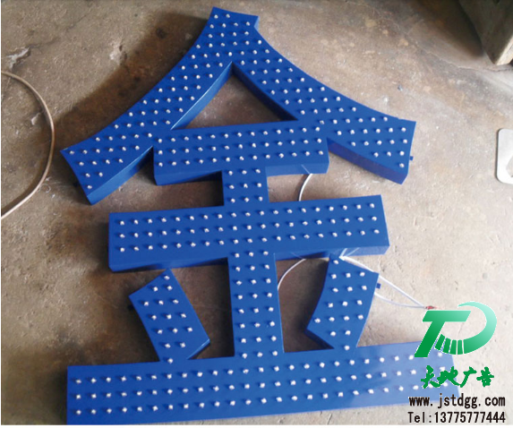 2.我們制作的LED發光字,外發光字是裝LED單個燈上去,所以發光更均勻,避免了普通發光字因字體筆畫及模具組裝過程中難以避免的光度不一的問題。