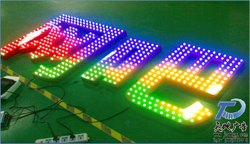 2、主題字采用鐵皮烤漆圍邊,正面沖孔,上貼防水LED燈珠,時(shí)尚美觀,光線均勻卻不失亮度,節(jié)能首選