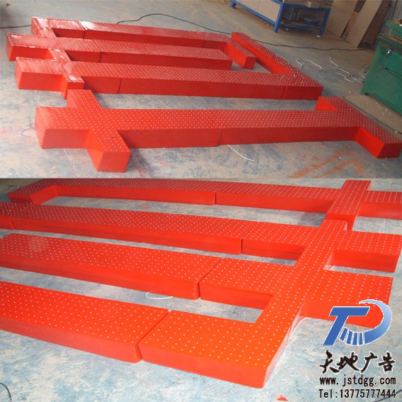 2、不受大小的限制:一般來講,LED吸塑等內發光字多受吸塑機等限制,大字很多需要去拼接,這樣有損字的美觀,外露字大字一般通過等離子切割彎折而成,因而不受機器而限制大小。不拼接,更美觀。