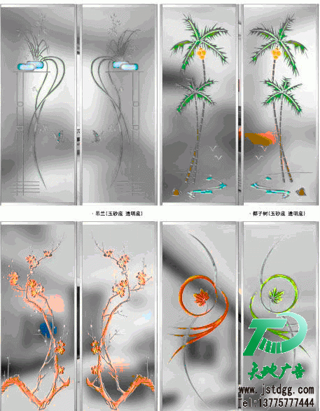 彩雕工藝玻璃一般采用8mm厚至15mm厚玻璃加工而成,機器雕刻、人工彩涂、磨邊、打孔,最后鋼化成產品。