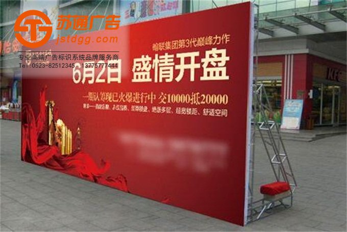 【公司簡介】:蘇通廣告主要經營戶外廣告,廣告桁架,鋁塑板門頭跨街廣告牌三面翻廣告牌等多種種類的戶外廣告牌制作,江蘇范圍內可送貨上門,幫您鋪設,大大節省了您寶貴的時間,蘇通廣告華東地區權威的廣告系統整合服務商,專業值得信賴。