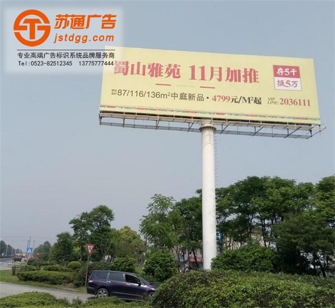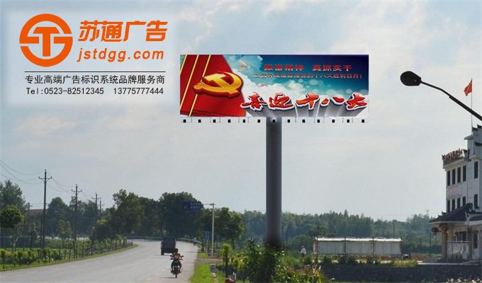 【公司簡介】:蘇通廣告主要經營戶外廣告,高炮廣告牌,三面翻廣告牌地產圍擋廣告活動桁架等多種種類的泰州戶外廣告公司,江蘇范圍內可送貨上門,幫您鋪設,大大節省了您寶貴的時間,蘇通廣告華東地區權威的廣告系統整合服務商,專業值得信賴。詳情請咨詢電話:0523-82512345。