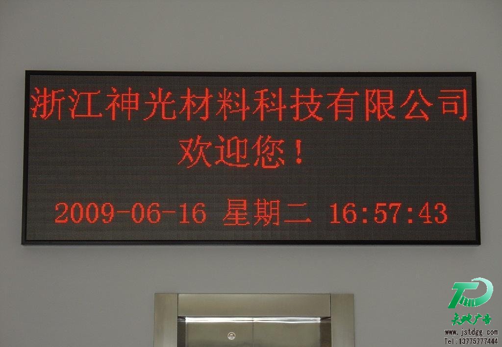 LED單色顯示屏一般用于大型廣告宣傳,分為戶外和室內兩種,室內LED顯示屏:發光點小,一般PH5mm點間距—PH7.62mm間距,顯示面積一般在幾至十幾平米甚至更大,主要用于室內大廳、酒吧、演藝廳、車站、影院等。戶外LED單色顯示屏:面積一般幾十至幾百平米甚至更大、亮度高,可在陽光下工作,具有防雨防風、防水功能主要用于戶外廣告,車站,廣場、商場等。LED單色顯示屏別名為門頭屏或電子屏和走字屏,用led燈珠組成,亮度較高,適用于店鋪戶外廣告宣傳、非液晶屏。就是大家在街上應該見過門頭一般為紅色的滾動走字屏。