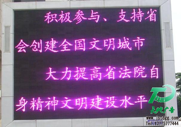江蘇LED電子顯示屏顯示畫面色彩鮮艷,立體感強,靜如油畫,動如電影,廣泛應用于金融、稅務、工商、郵電、體育、廠礦企業、交通運輸、教育系統、車站、碼頭、機場、商場、賓館、銀行、證券市場、建筑市場、拍賣行、工業企業管理和其它公共場所。