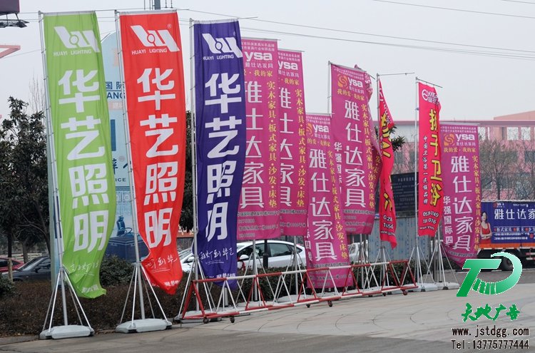 泰州天地廣告公司可同時定做廣告旗幟,5米的旗桿廣告旗尺寸:1.2*3.8米(可根據自己的需要選擇),旗面內容經客戶確認后出現內容錯誤問題,泰州天地廣告公司不承擔任何責任