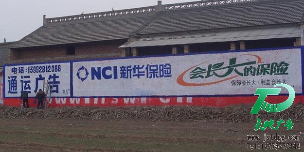 江蘇天地廣告?zhèn)髅接邢薰緭碛屑夹g(shù)過(guò)硬的墻體廣告制作團(tuán)隊(duì),制作出高質(zhì)量的墻體廣告。通過(guò)正規(guī)的法律途徑簽訂墻體租賃合同,能最大程度保障農(nóng)民的合法權(quán)益。選墻體廣告就來(lái)江蘇天地廣告公司,質(zhì)量信得過(guò)。